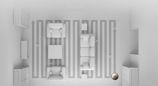- Limpieza localizada. Este modo es necesario para limpiar una zona especialmente sucia. El robot se desplaza a la zona designada o el usuario la especifica previamente en un mapa.