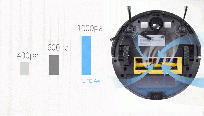El sistema inteligente del iLife A4, compuesto por numerosos sensores integrados, permite que el dispositivo se desplace a la perfección. El parachoques protector contiene sensores mecánicos de obstáculos que se activan con el más mínimo movimiento. La base también cuenta con sensores infrarrojos para la base de carga y la detección de obstáculos, que ayudan a identificar obstáculos en la trayectoria de la aspiradora y a prevenir colisiones ajustando automáticamente su trayectoria. Los sensores infrarrojos de proximidad y altura, ubicados en la base, responden rápidamente a los cambios de altura y sirven como protección contra caídas, además de apagar el dispositivo si se vuelca.