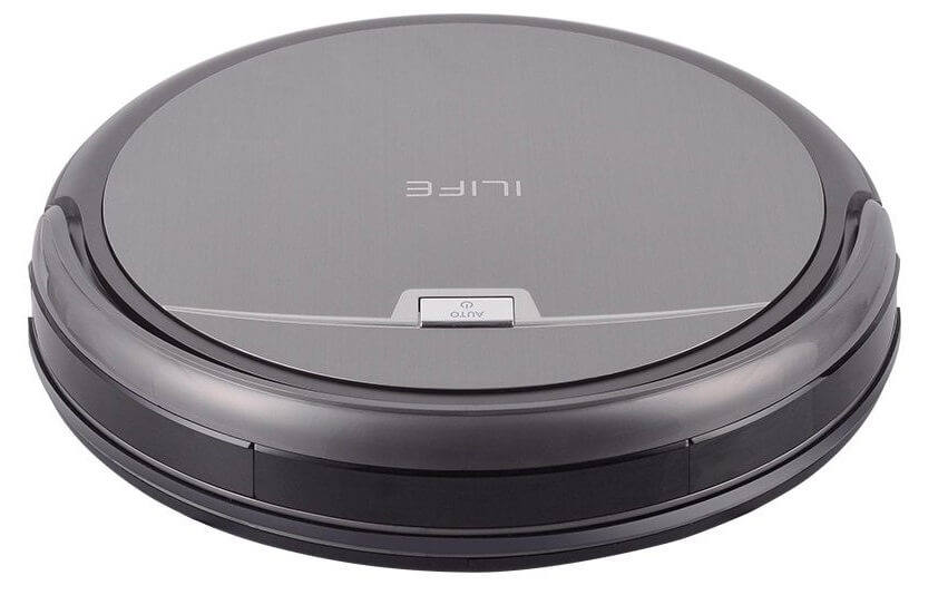 El robot aspirador Chuwi iLife A4 tiene un cuerpo redondo y una altura relativamente baja (7 cm). Está fabricado en plástico resistente con una cubierta superior de aspecto metálico. El cuerpo tiene un mínimo de controles. Al observar el robot desde arriba, solo se ve un botón, retroiluminado en tres colores y con diferentes modos: