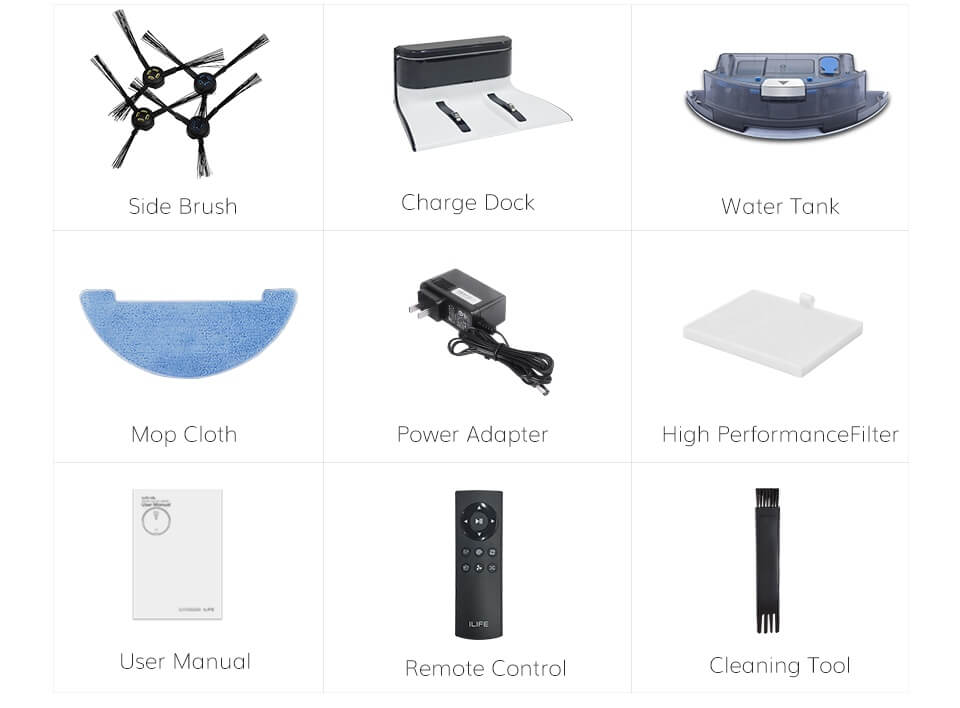 El iLife V8s también cuenta con un generoso depósito de polvo de 750 ml. Esto es suficiente para varios ciclos de limpieza, siempre que su casa no esté en malas condiciones y la limpie a diario. El depósito de polvo se puede sustituir por un depósito de agua, lo que permite al robot realizar limpieza en húmedo. El depósito de agua tiene una capacidad de 350 ml, suficiente para un ciclo de limpieza completo.