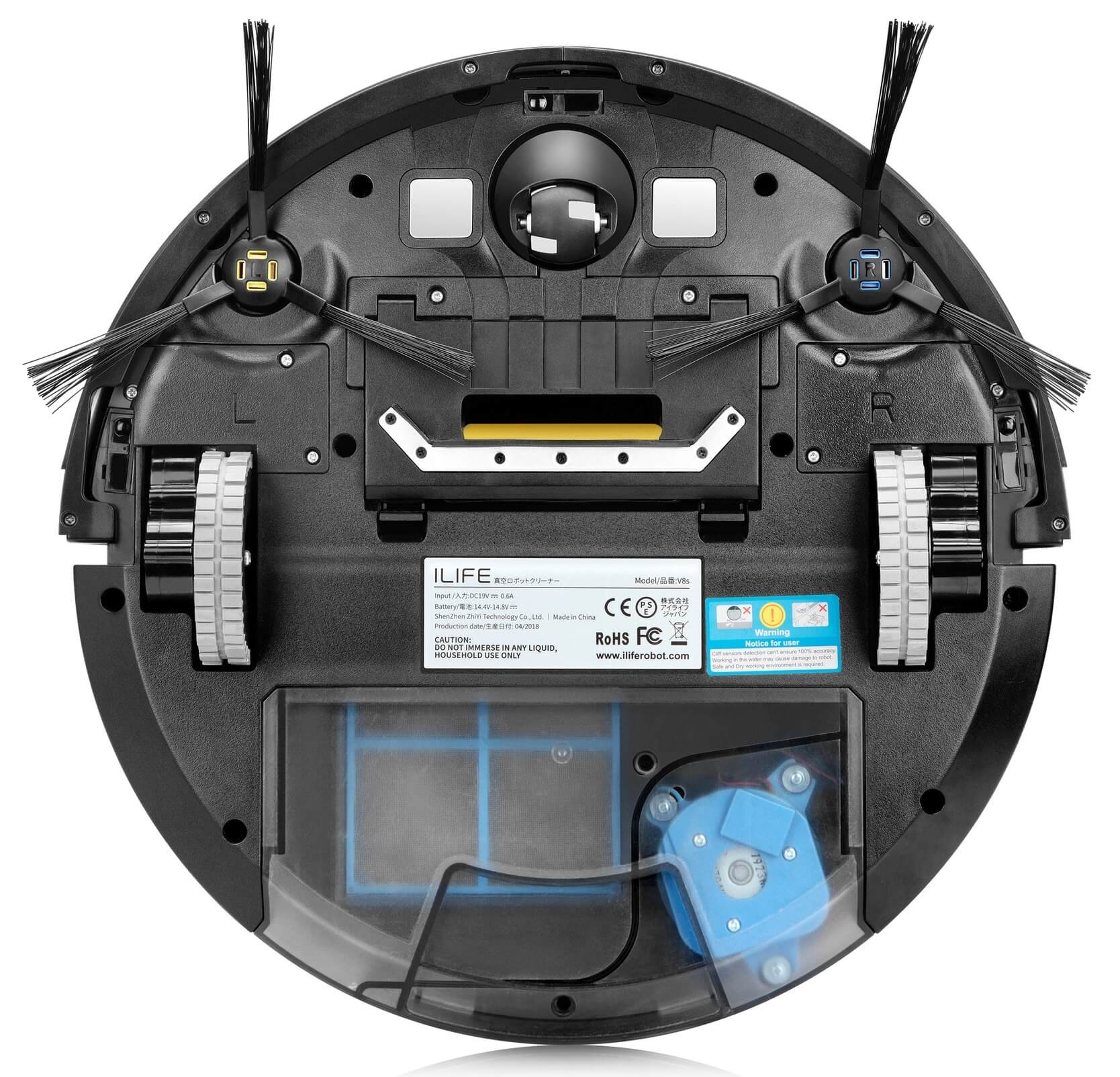 La iLife V8s está equipada con dos cepillos laterales y un puerto de succión. Carece de cepillo central, lo que la hace más adecuada para limpiar suelos duros. La gama del fabricante incluye modelos con precio similar y numerosas funciones, incluyendo un cepillo turbo. La necesidad de un cepillo central dependerá de si desea limpiarla con regularidad y de si tiene mascotas.