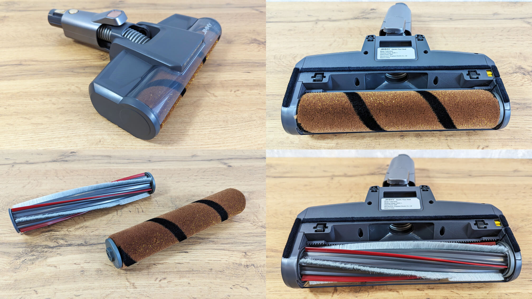 En cuanto al peso, la unidad principal pesa 1982 gramos, el tubo de extensión 410 gramos y la boquilla principal 761 gramos. El peso total de la aspiradora, completamente ensamblada, es de 3153 gramos. Es ligeramente más pesada que modelos similares, pero no significativamente. El centro de gravedad está bien distribuido, por lo que no se cansará la mano al usarla. También cabe destacar que la unidad principal es más pesada que la Jimmy H8 Flex Hercules, que probamos anteriormente. Sin embargo, las unidades principales parecen idénticas. Esto sugiere que, en realidad, tienen un motor más potente, en lugar de solo una mayor velocidad.
