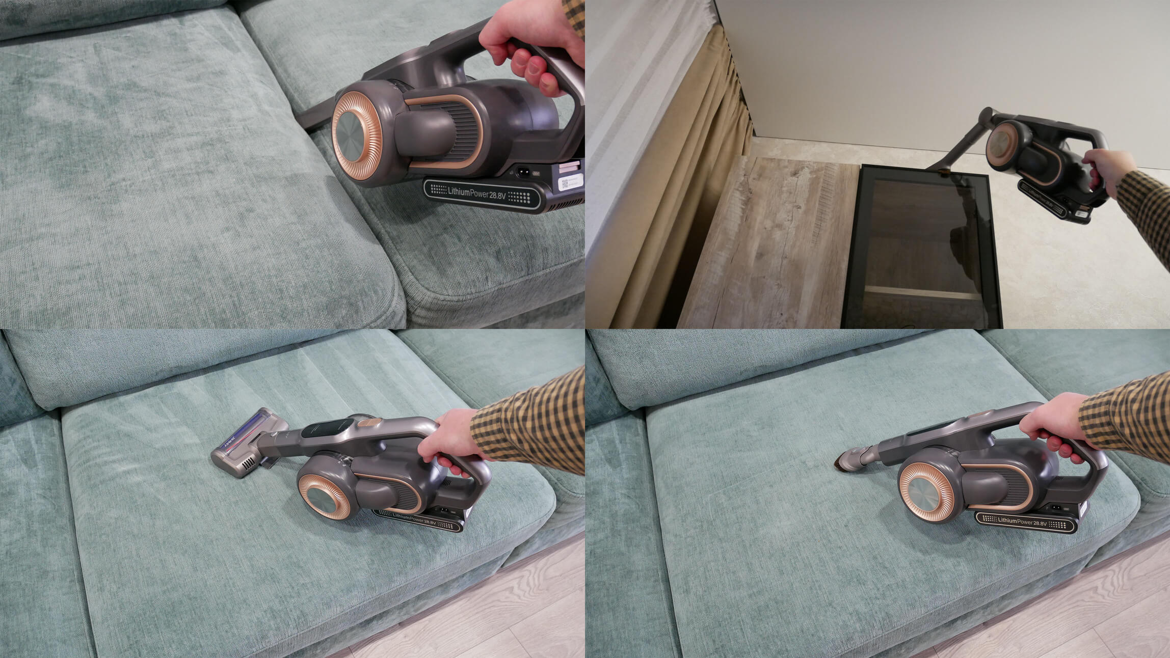 Cabe destacar que el kit completo permite limpiar un sofá, zonas fuera del alcance de la boquilla principal e incluso el interior del coche. En resumen, esta aspiradora es apta para diversas aplicaciones.