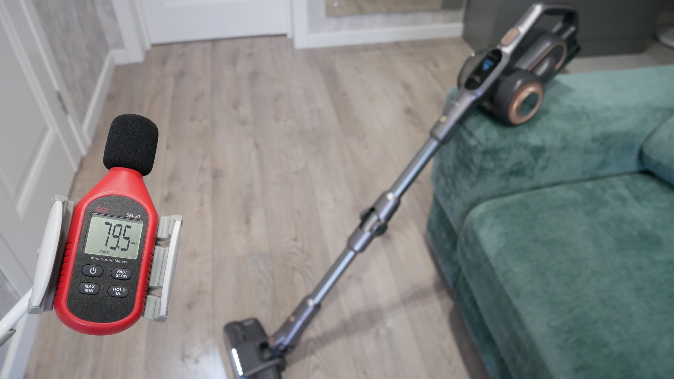 Probé personalmente el nivel de ruido. En modo automático, se sitúa entre 77 y 78 dB, mientras que en modo Eco, es ligeramente inferior, 76 dB. En modo Turbo, sube a 78 dB, y a máxima potencia, el pico fue de 79,1 dB. El nivel de ruido de este modelo es elevado, pero no alarmante. También vale la pena considerar su altísima potencia de succión.