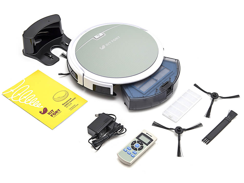 Al comprar un robot aspirador, es importante comprobar que incluye todos los componentes. El Kitfort KT-519 incluye las siguientes piezas: