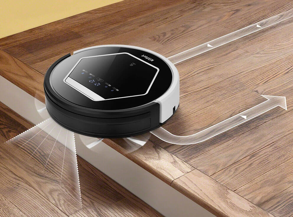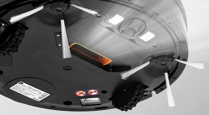 Como comentamos en nuestra reseña anterior, el robot aspirador Kitfort KT-553 está equipado con sensores para evitar colisiones con obstáculos verticales, para evitar caídas desde superficies elevadas y también sensores de polvo.