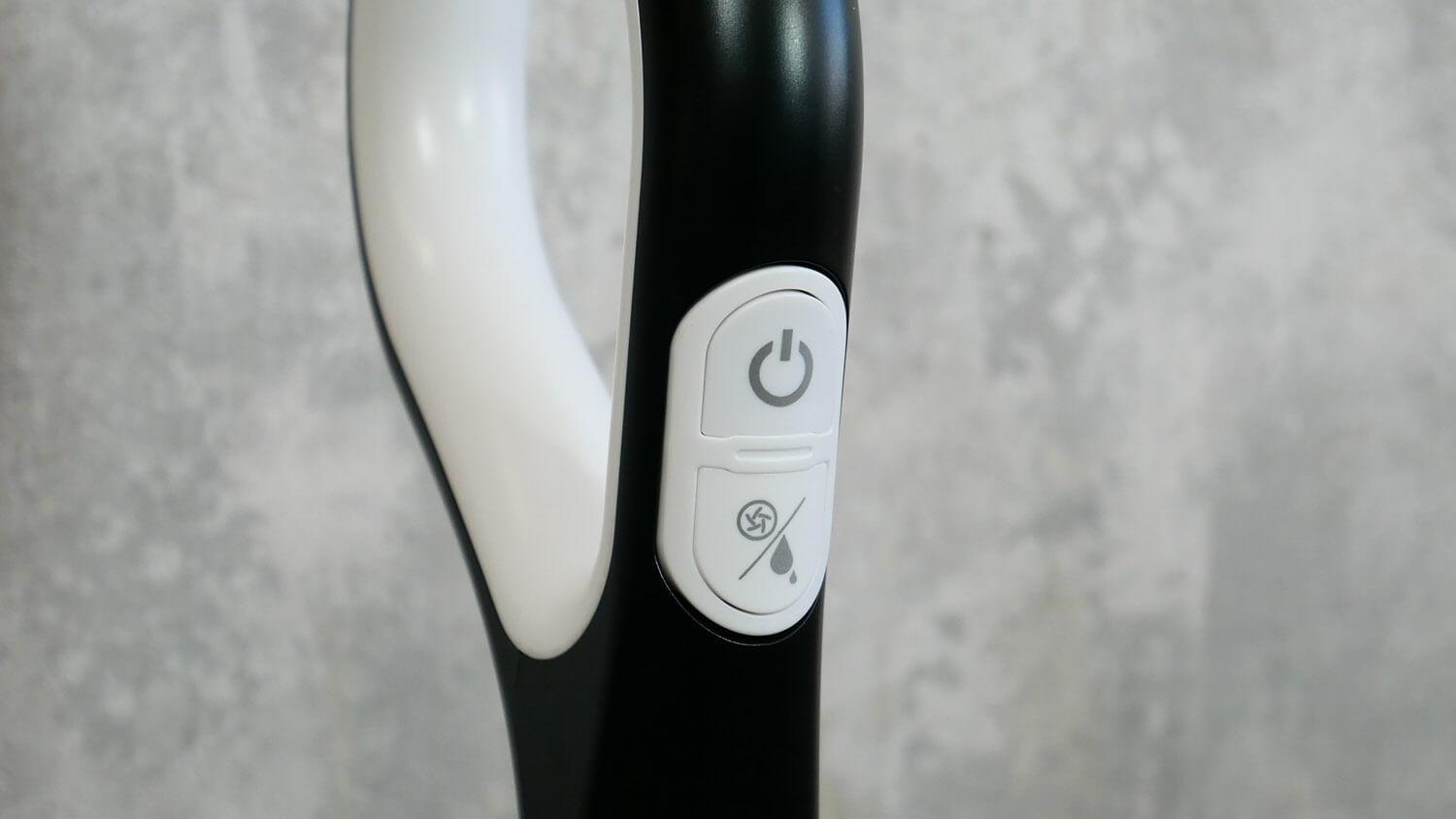 El dispositivo se controla mediante botones en el mango. Solo hay dos: uno para encender y apagar, y otro para cambiar entre los modos de funcionamiento. Dispone de un modo turbo, limpieza en seco sin agua y limpieza en húmedo. También dispone de un modo automático, pero durante el uso, no noté que el Liectroux i7 Pro ajustara automáticamente la potencia de succión ni realizara ninguna otra acción.