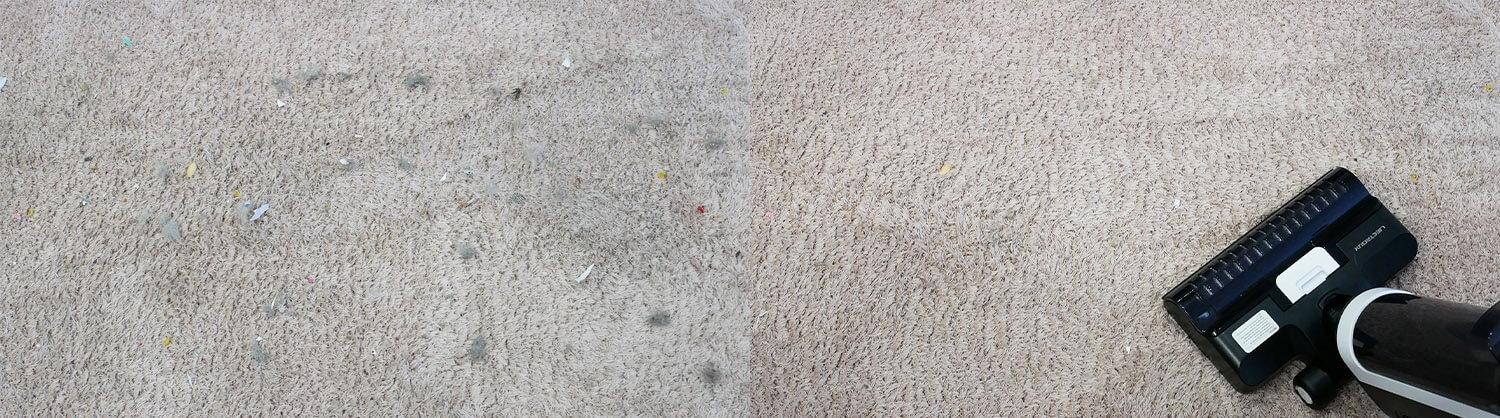 Dado que se trata de una aspiradora para seco y húmedo, no es práctica para limpiar alfombras. Sin embargo, sí es posible en modo seco. La estructura del rodillo no es capaz de limpiar alfombras a fondo, y los residuos pueden obstruir el sistema de filtrado, como ocurrió durante las pruebas, ya que el sistema de succión no funciona correctamente sin agua. En general, recomiendo limpiar alfombras con una aspiradora vertical normal o confiar esta tarea a un robot aspirador con un diseño y una potencia adecuados.