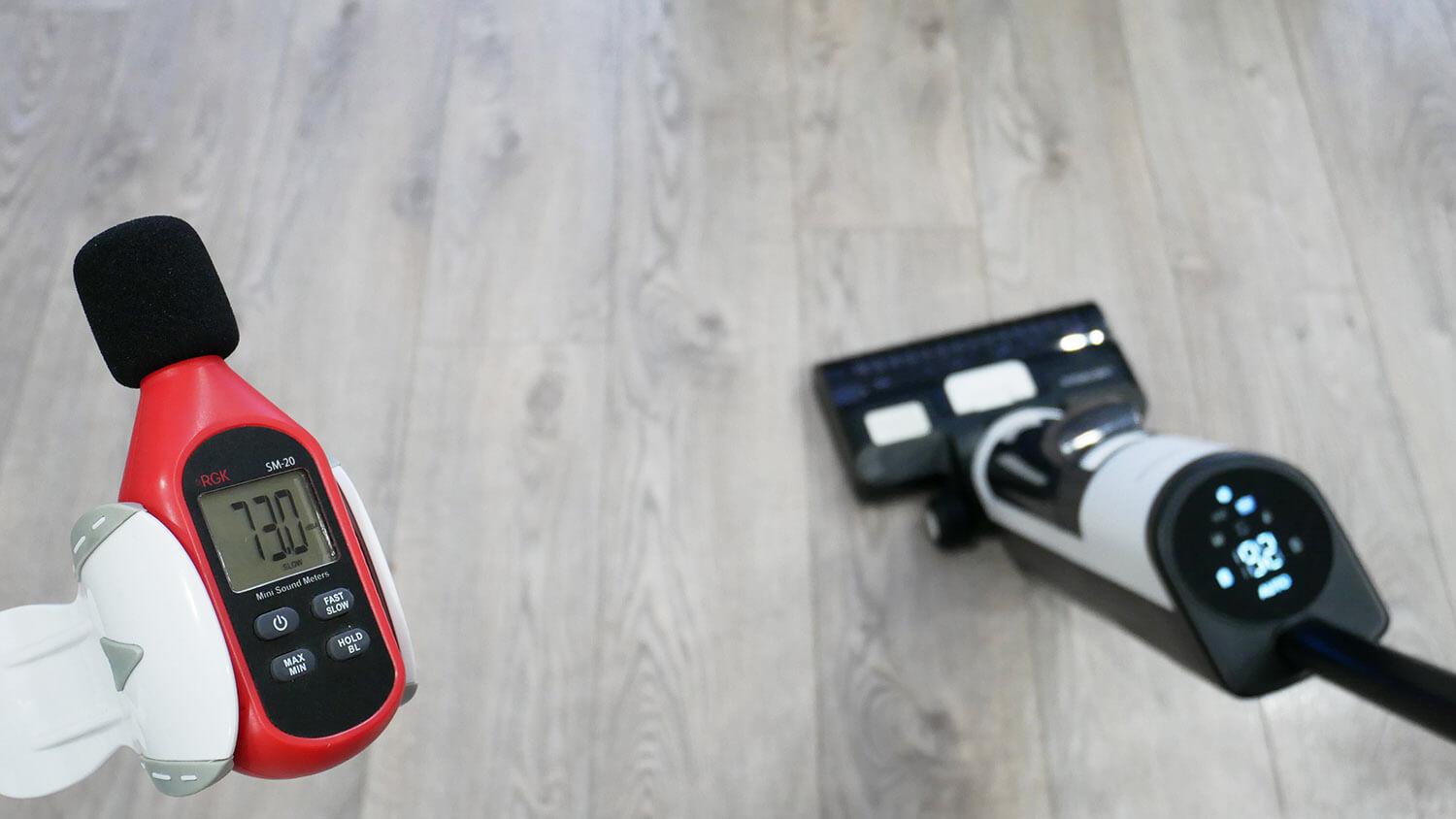 La aspiradora tiene una batería de mayor capacidad que productos similares, así como un depósito de agua más grande. El nivel de ruido, probado personalmente, se situó entre 72 y 74 dB, similar al de la mayoría de productos similares.