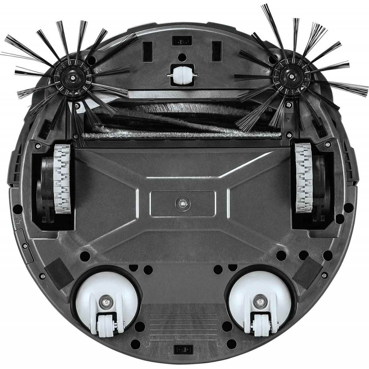 Si le das la vuelta a la carcasa, verás la herramienta principal para limpiar pisos: el cepillo central, de mayor tamaño. También hay dos cepillos laterales, igualmente importantes. Al extenderse más allá de la carcasa, alcanzan fácilmente zonas difíciles de alcanzar, como esquinas y polvo en paredes y zócalos.