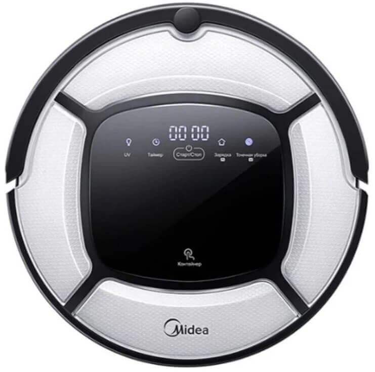 Las aspiradoras robot Midea VCR15 y VCR16 son idénticas en apariencia. La carcasa es de plástico brillante, con la única diferencia de color: blanca en la primera y negra en la segunda. Las dimensiones de los dispositivos son promedio: 34 centímetros de diámetro y 9,6 centímetros de altura.