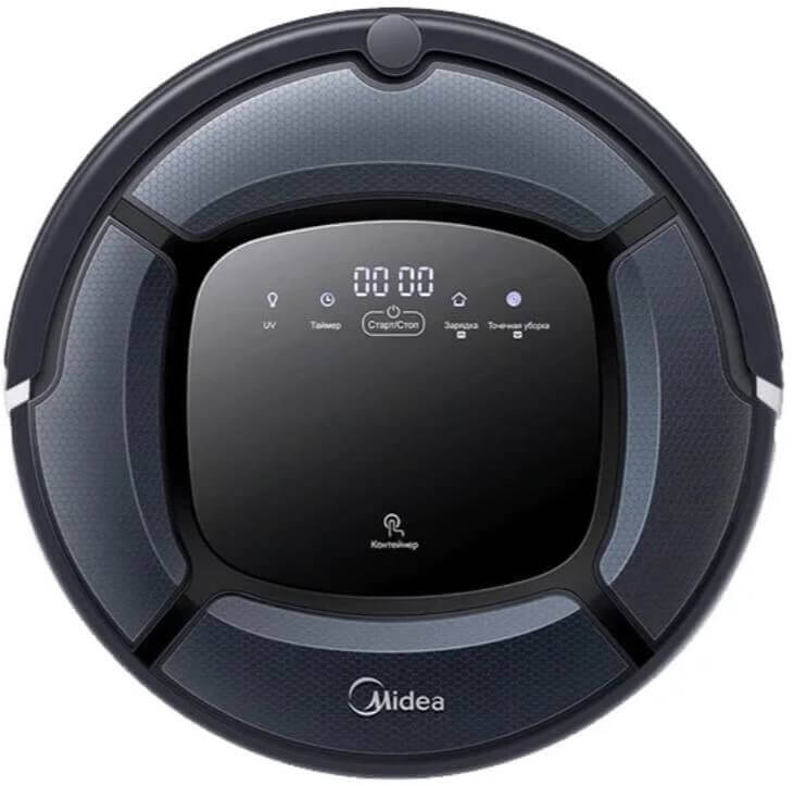 La superficie superior del dispositivo está dividida en su circunferencia por cuatro insertos decorativos, entre los cuales se encuentra la tapa del compartimento del depósito de polvo. En la parte posterior se encuentran una pantalla LCD, indicadores LED y cinco botones de control táctiles. Estos botones controlan la lámpara UV, el temporizador, el inicio/parada, la carga y la limpieza localizada.