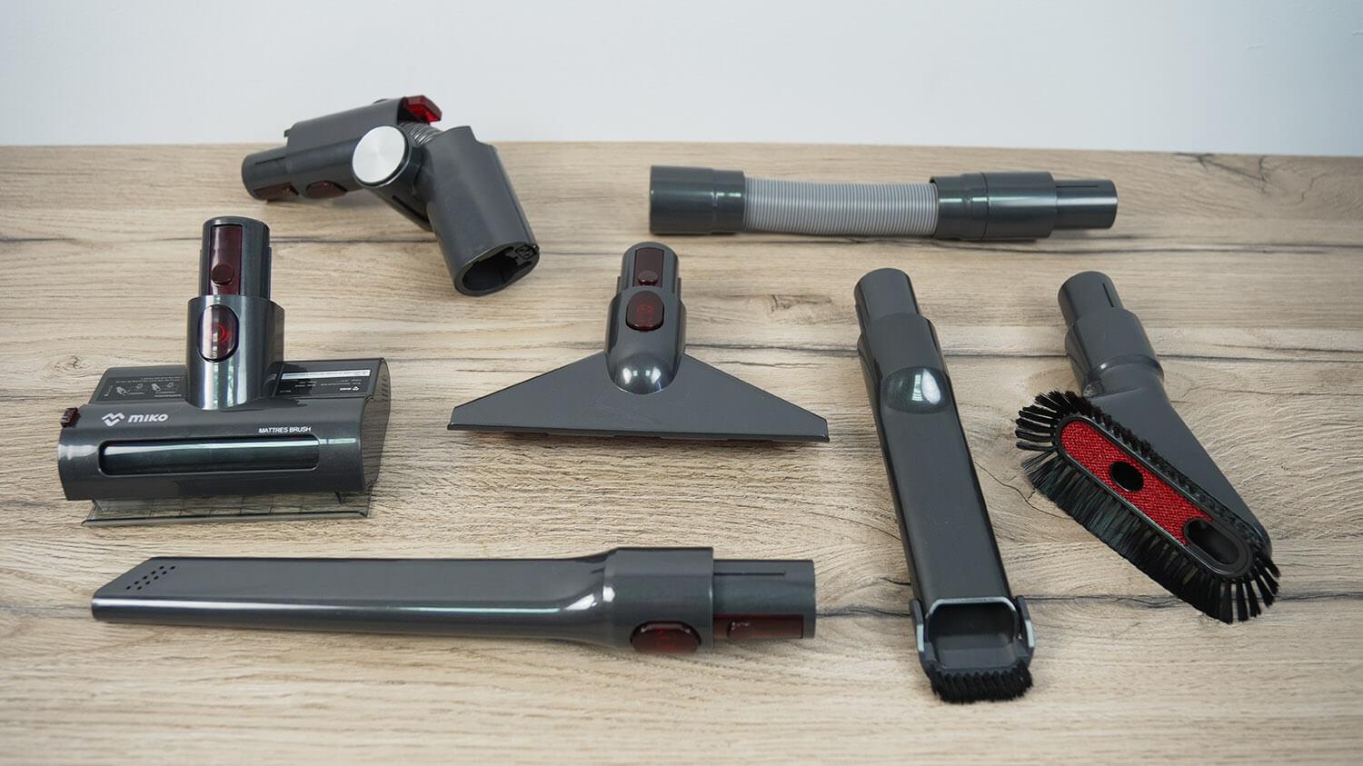 La última aspiradora vertical de la línea Miko en nuestra sala de pruebas es la Miko V11. Su principal característica es su accesorio de fregado con dos almohadillas giratorias, que permite aspirar y fregar simultáneamente. Además, el dispositivo cuenta con un amplio conjunto de accesorios, lo que lo hace ideal para diversas tareas de limpieza doméstica. A continuación, analizaré a fondo la Miko V11, destacaré sus ventajas y desventajas, y opinaré sobre si merece la pena comprarla. Su precio actual ronda los 200-210 €, lo que a primera vista parece bastante razonable. ¡Comencemos!