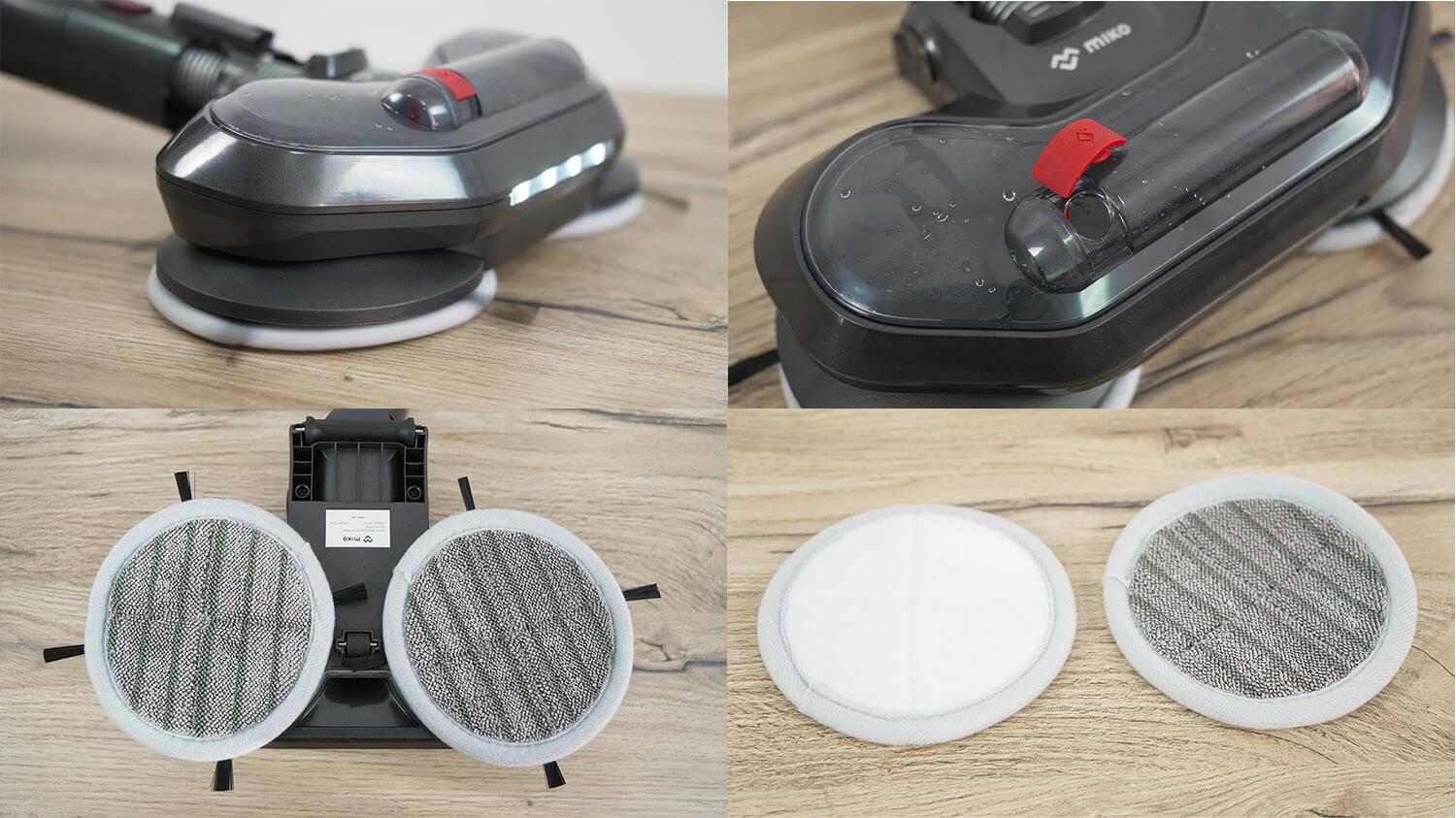 El accesorio de fregado merece especial atención. Es significativamente mejor que el depósito de agua y el paño estándar que se colocan detrás del colector de polvo, como los del modelo más pequeño Miko V10.