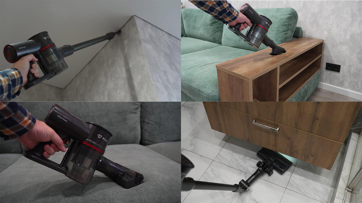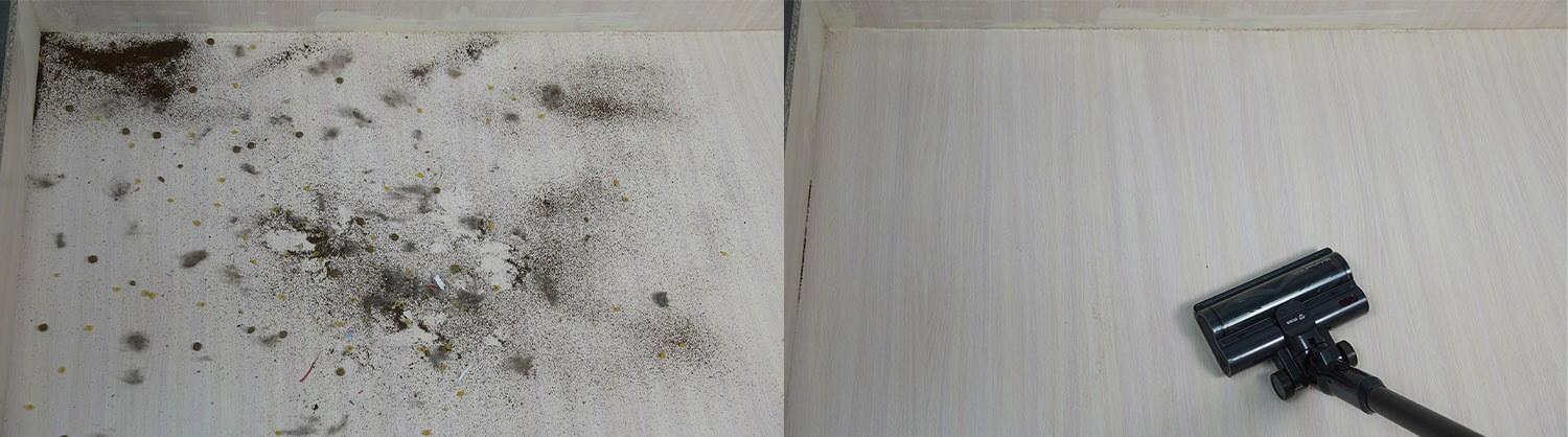 En cuanto a la potencia de succión, en su configuración mínima, la Miko V11 pudo aspirar residuos de grietas de hasta 8 mm de profundidad. Y en su potencia máxima, o modo 2, la aspiradora limpió todas las grietas, incluidas las de 10 mm de profundidad. Esta potencia es suficiente para uso doméstico, y diría que la potencia en el modo 2 es la misma que la de la Miko V10 en el modo 3, por lo que se considera mejorada en lugar de estándar.
