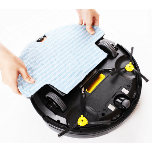 - Limpieza en húmedo. El agua se suministra automáticamente a un paño especial, lo que garantiza que se mantenga siempre húmedo. La capacidad del contenedor permite limpiar hasta 120 metros cuadrados sin cambiar el paño.