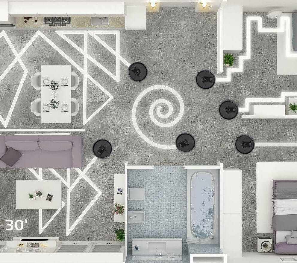 - Cuerpo bajo, gracias al cual el robot puede limpiar debajo de los muebles.