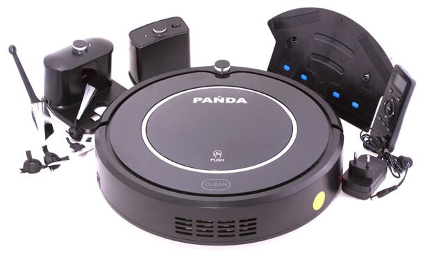 El robot Panda en cuestión tiene un diseño elegante y moderno, que es exactamente similar a Serie de mascotas Panda X600El cuerpo resistente y estable del dispositivo está fabricado en plástico negro o rojo. Ambos modelos (Absolute Black y Absolute Red) tienen características idénticas y solo se diferencian en el color. El robot aspirador tiene una forma redonda y dimensiones compactas. Un parachoques de goma alrededor del perímetro del cuerpo actúa como protector y ayuda a limpiar con mayor cuidado tanto al robot como a los muebles circundantes.