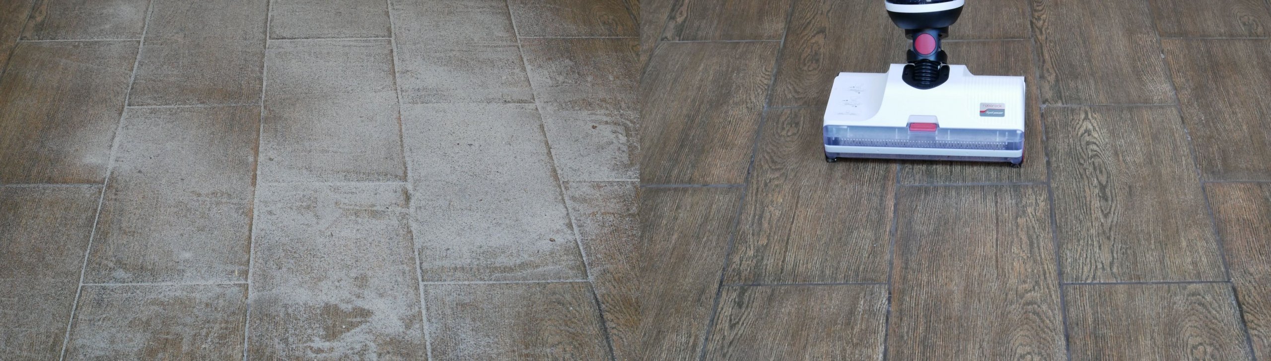 El Roborock Dyad también es muy bueno recogiendo arena. Incluso puede aspirar arena húmeda de las grietas entre las baldosas.