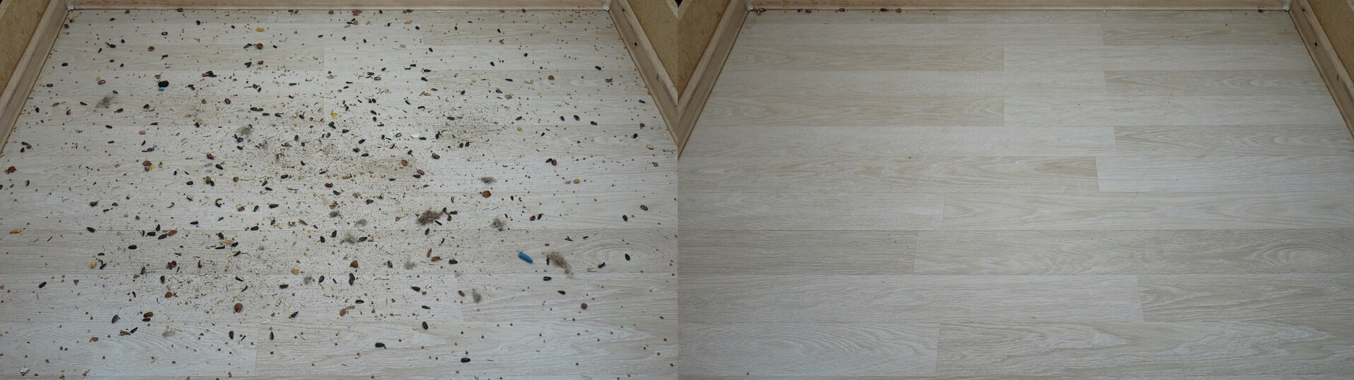 Una prueba más difícil es fregar la suciedad seca del suelo laminado. El Roborock Dyad realiza esta tarea a la perfección. No deja rastros de suciedad ni marcas, lo cual es una ventaja.