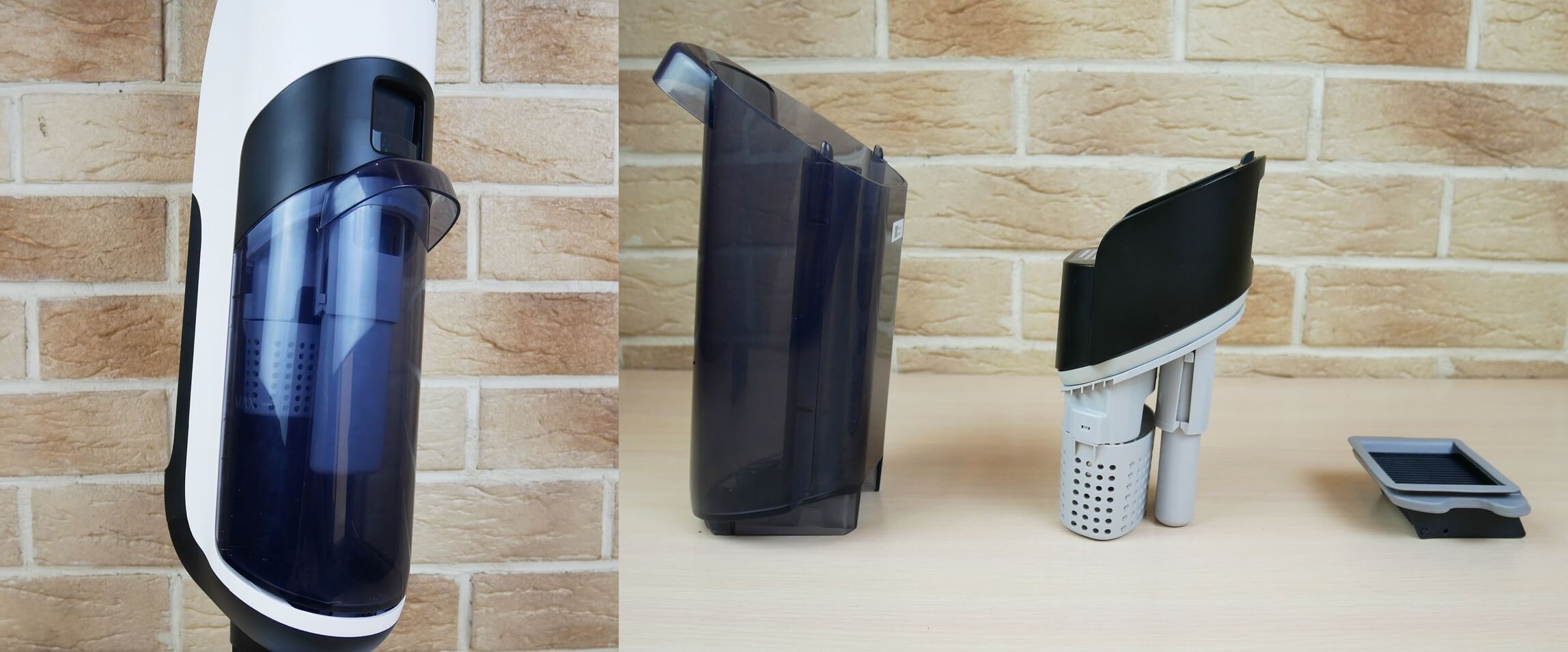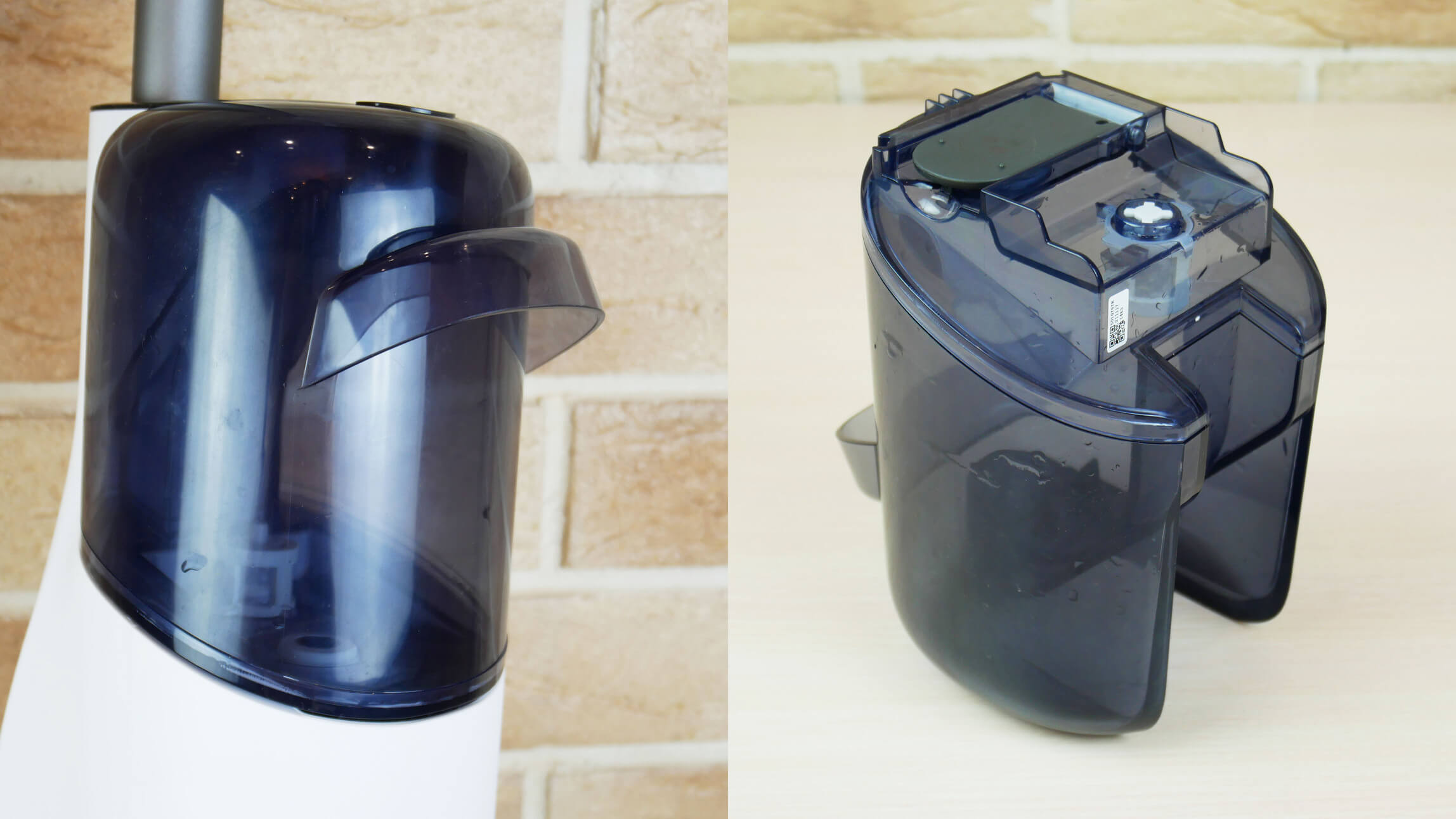 Pasemos a revisar los tanques. El tanque de agua sucia tiene una capacidad de 620 ml. Contiene un filtro HEPA con malla, un flotador y un filtro grueso.