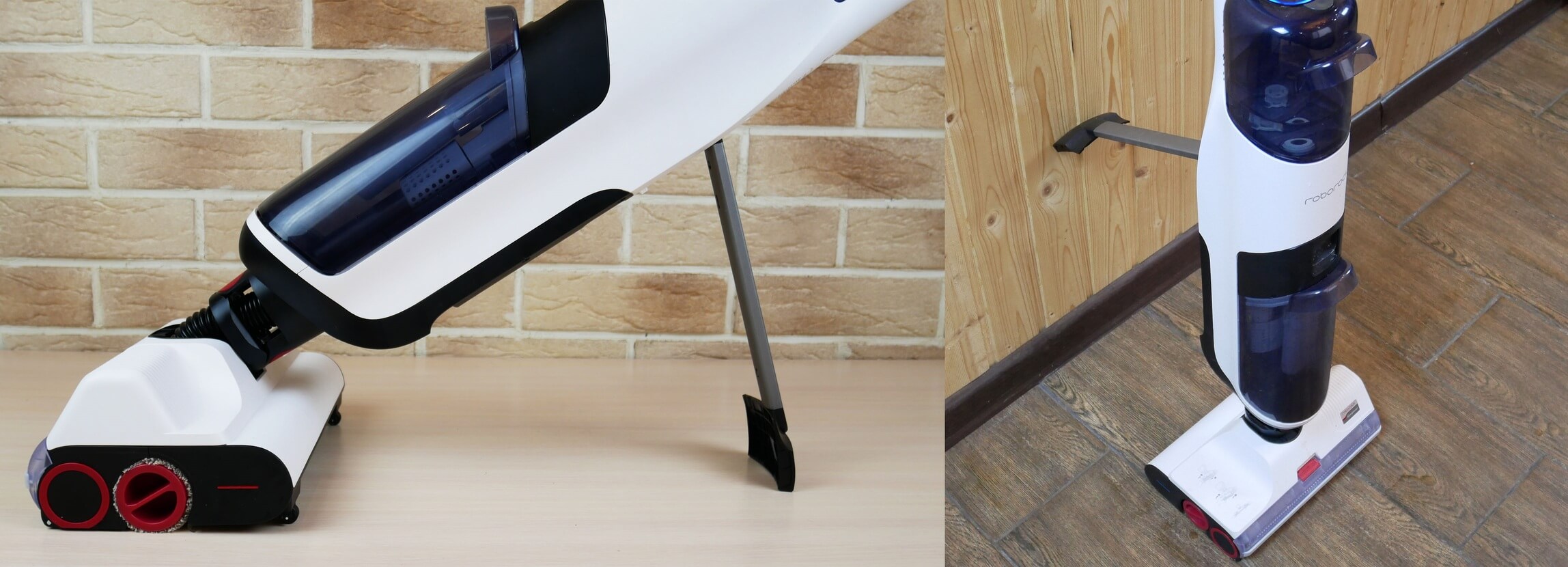 Ah, y otra característica única de la aspiradora es su soporte, que permite colocarla temporalmente mientras limpias. Puedes apoyarla contra una pared o dejarla en el suelo para un breve descanso. Por ejemplo, para vaciar el agua sucia del depósito o rellenarlo con agua limpia.