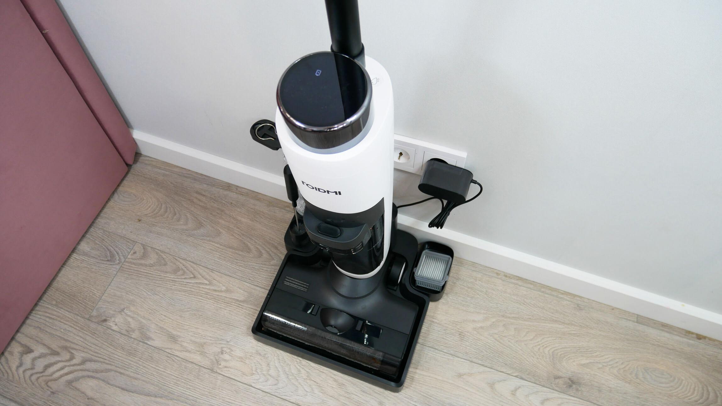 Hablando de la base, el ROIDMI NEO se carga, se limpia y se seca automáticamente con su rodillo. El secado se realiza con aire a temperatura ambiente. Lamentablemente, no cuenta con opción de calor. Al menos esto eliminará el exceso de humedad, reduciendo el riesgo de mal olor y la proliferación de bacterias. El rodillo se secará naturalmente a temperatura ambiente.