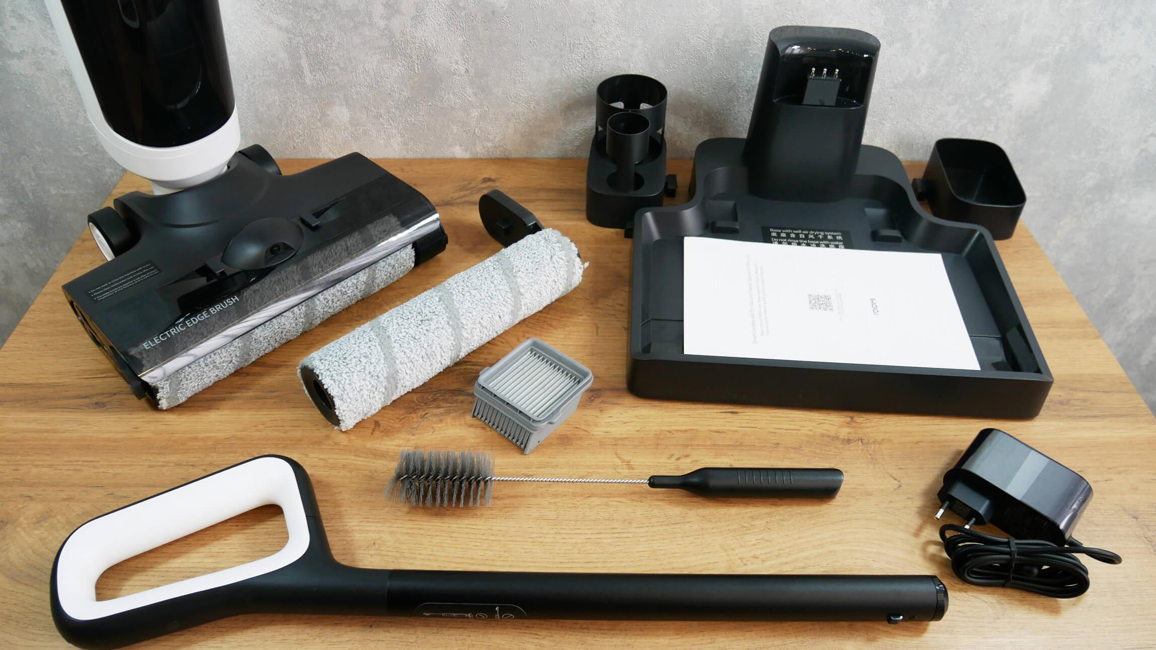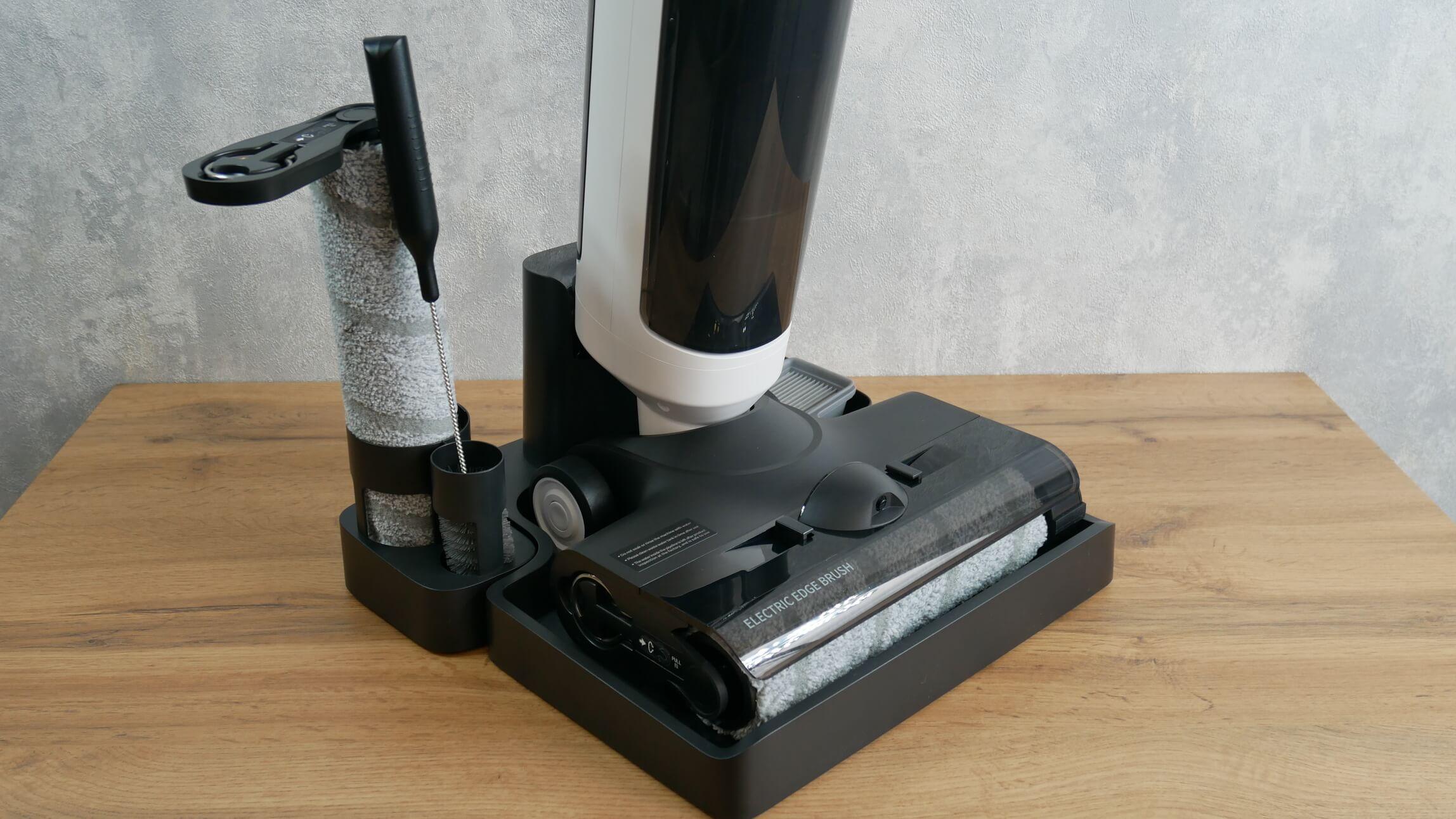 Curiosamente, la parte superior de la tapa cuenta con una boquilla rociadora de agua, similar a la del Jimmy HW10 Pro, reseñado anteriormente en el canal. El agua se suministra automáticamente al rodillo bajo la tapa, pero también se puede rociar manualmente para, por ejemplo, disolver manchas o aumentar la humectación del suelo.