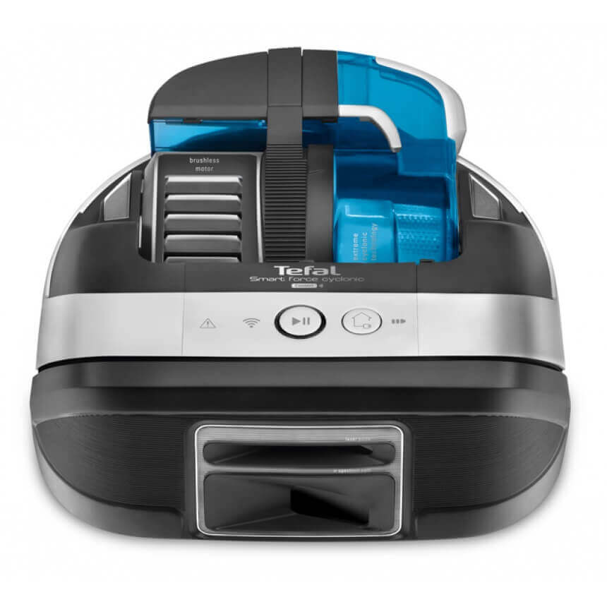 La potencia de succión se puede ajustar mediante la aplicación móvil. Además del control desde el smartphone, los modos de funcionamiento se pueden configurar mediante el panel de control en la parte superior de la unidad, que cuenta con interruptores mecánicos. El fabricante recomienda limpiar la unidad Tefal RG8021RH con un paño húmedo.
