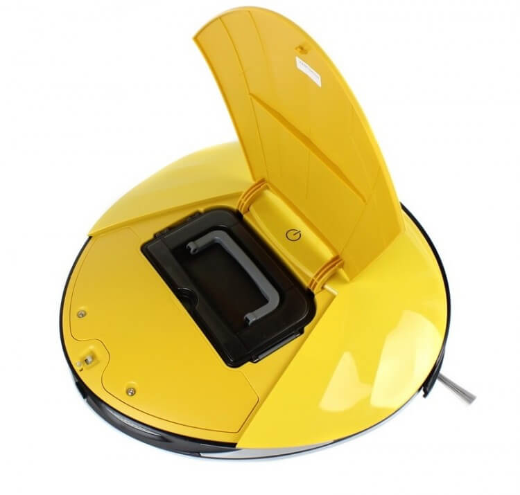La parte superior del robot aspirador cuenta con una ventana convexa de recepción de infrarrojos rodeada de seis indicadores LED. Debajo se encuentra un botón de encendido táctil. El dispositivo utiliza los LED para indicar su estado actual.