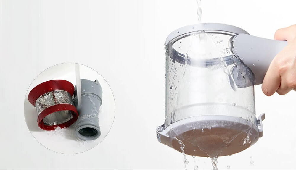 A diferencia de su predecesora, la Roidmi, la aspiradora de mano inalámbrica Xiaomi Jimmy JV51 toma prestado el diseño del depósito de polvo de la Dyson V8. El depósito es vertical y cuenta con una puerta específica para vaciar los residuos acumulados. Carece de mecanismo de empuje hacia abajo (como el de la Dyson V8). Sin embargo, el depósito está diseñado para vaciarse fácilmente e incluso enjuagarse con agua corriente. Está equipada con un filtro HEPA que debe reemplazarse al menos una vez al año.