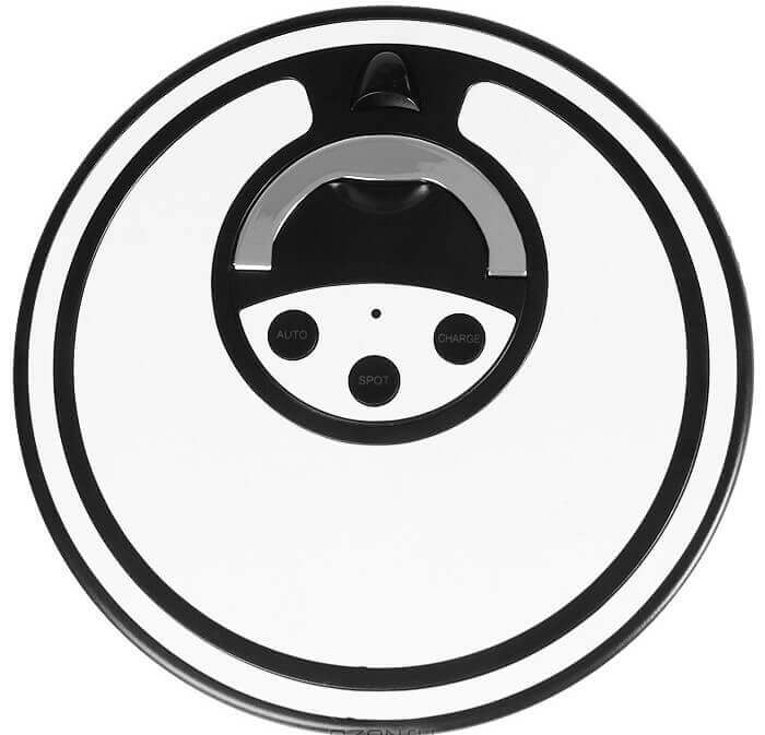La cubierta superior del Xrobot XR-510A cuenta con botones para seleccionar el modo de limpieza del robot. Además, la cubierta cuenta con un indicador que muestra el nivel de batería. Junto a estos botones y al indicador hay un asa para facilitar su transporte. Junto a ella hay un sensor que recibe señales de la estación o pared virtualAlrededor del perímetro se instala un parachoques de goma con sensores incorporados para detectar obstáculos y diferencias de altura.