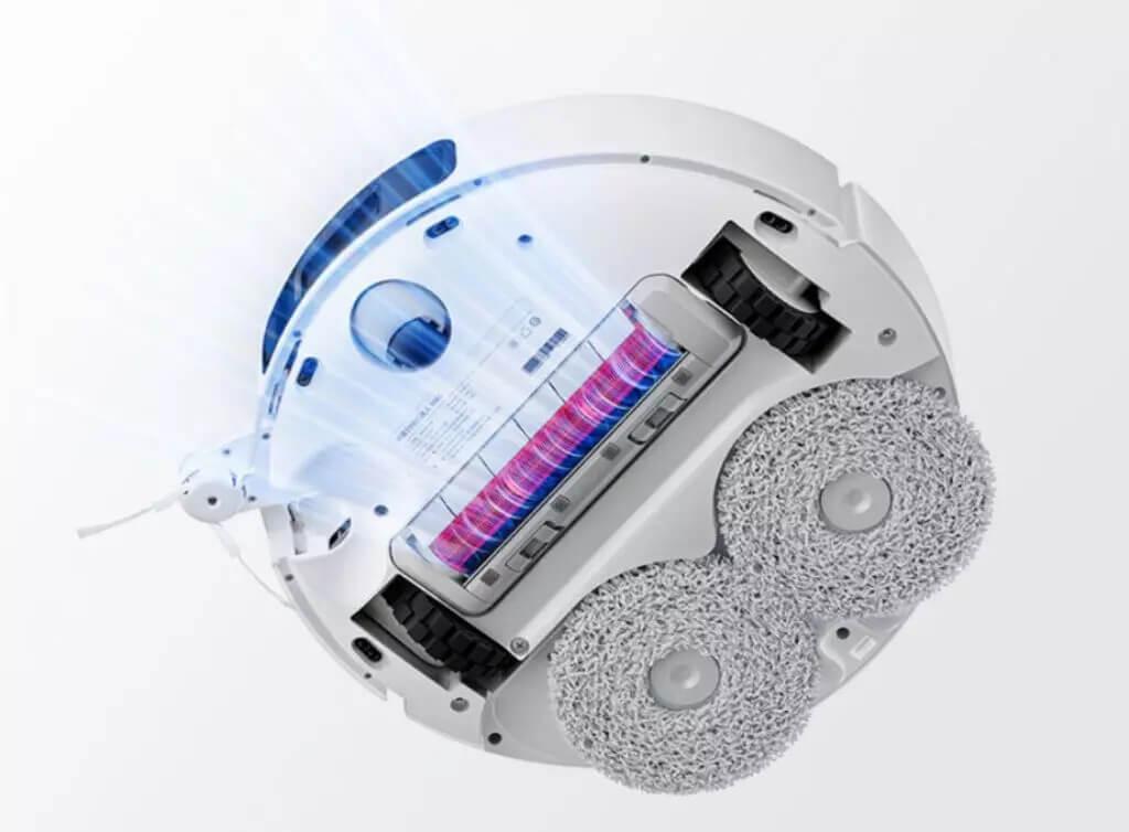 rublos. El robot cuenta con un sistema preciso de reconocimiento de objetos, monitoreo remoto del hogar mediante cámara, una estación todo en uno, dos almohadillas redondas que se levantan sobre alfombras y un cepillo turbo de silicona.