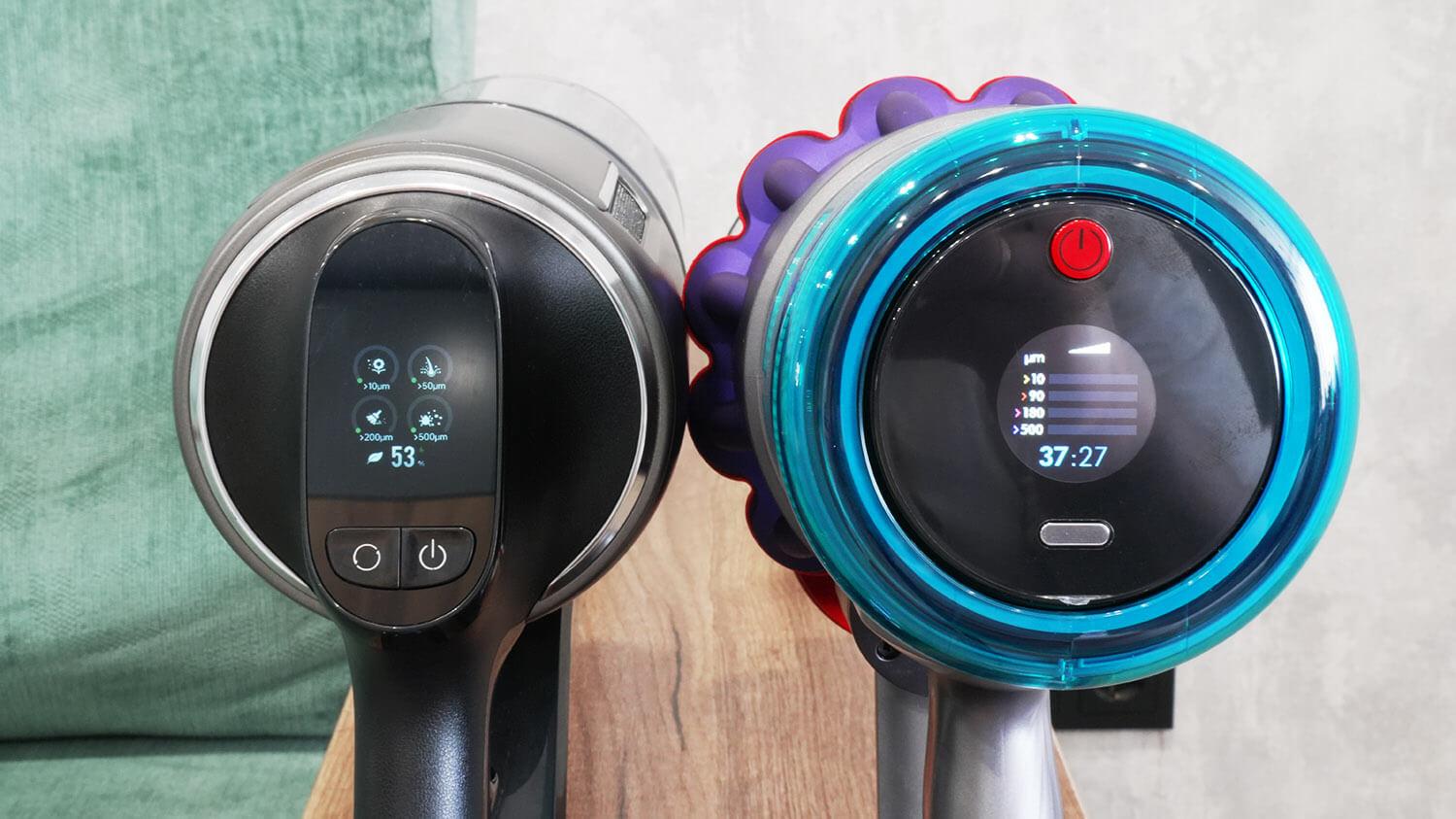 Las dos aspiradoras comparadas pueden contar el tamaño y la cantidad de residuos. Todo es igual.