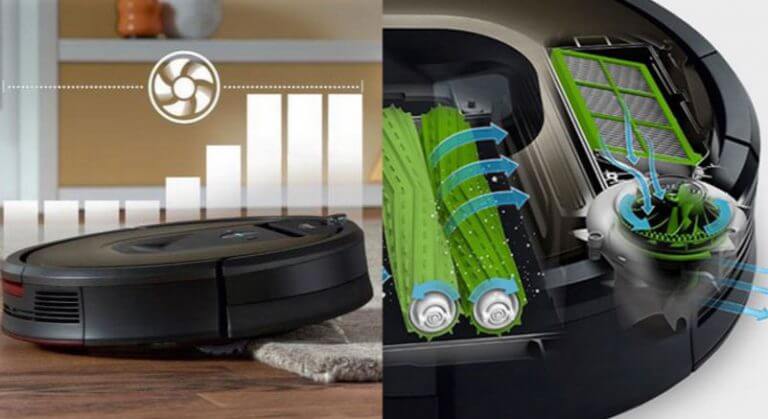 Tanto el Roomba 980 como el 960 incorporan el sistema mejorado de recolección de polvo AeroForce Stage 3. La única diferencia entre ambos dispositivos es su modo turbo: en comparación con el modo normal del Roomba 960, su potencia máxima se reduce a 5 veces la del Roomba 980, en comparación con 10 veces la del Roomba 980. Esto sugiere que el motor del 960 es inferior al del 980. Gracias a su succión, el dispositivo funciona de forma mucho más eficiente y eficaz, y un indicador especial muestra cuándo el depósito de polvo está lleno.
