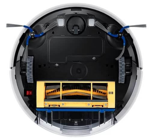Laitteen pohjassa on kaksi vetopyörää, joiden välissä on akkulokero. Pääharja sijaitsee takana, jonka takana on pölysäiliön pohjakansi. Laitteen etuosassa on kaksi sivuharjaa, jotka puhdistavat roskat ja pölyn nurkista ja jalkalistojen vierestä ohjaamalla ne pääharjaan ja pölysäiliöön.