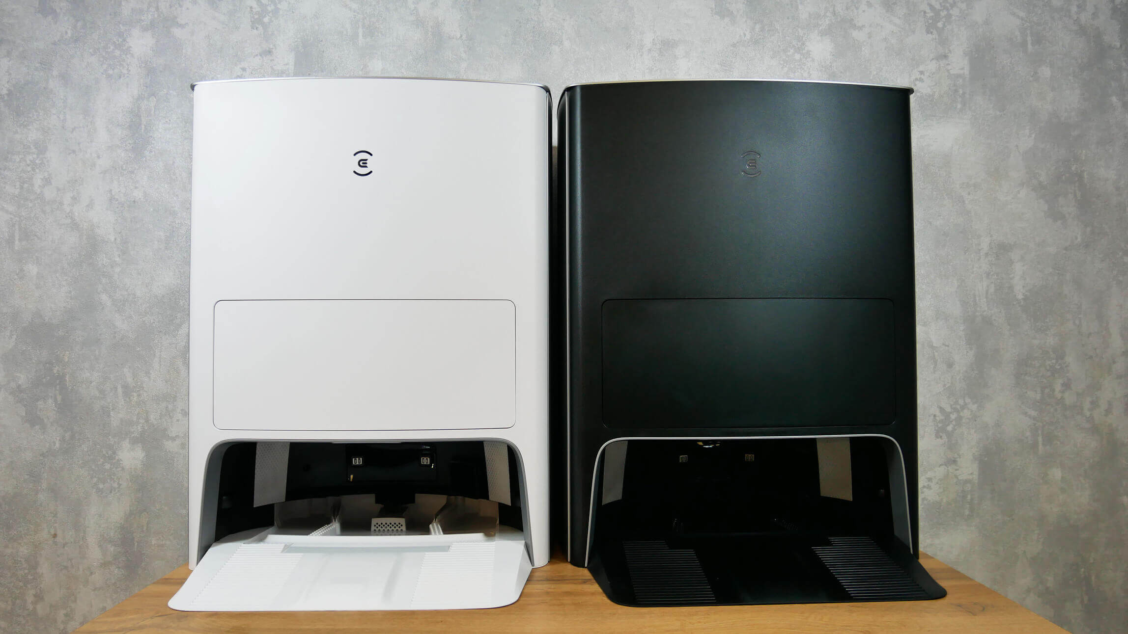 התחנות שונות באופן משמעותי: ל-Ecovacs Deebot X1 Pro OMNI, כמו לגרסה האחרונה של Ecovacs Deebot X1 Omni, יש כיסוי בגב התחנה שמסתיר שקעים לחיבור התחנה לקווי שירות. אנו רוכשים מודול מיוחד ומחברים את שואב האבק הרובוטי לקווי אספקת המים והביוב. בגרסאות הראשונות של Ecovacs Deebot X1 Omni אין שקעים כאלה, לכן יש לוודא זאת עם המוכר בעת הזמנת דגם זה.