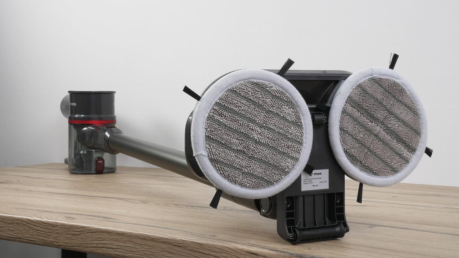 ה-Miko V11 בולט מהמתחרים שלו בזכות אביזר המגב המתקדם שלו, הכולל דיסקיות עגולות מסתובבות ופתח יניקה. הוא מאפשר לכם לנגב ולשאוב בו זמנית.