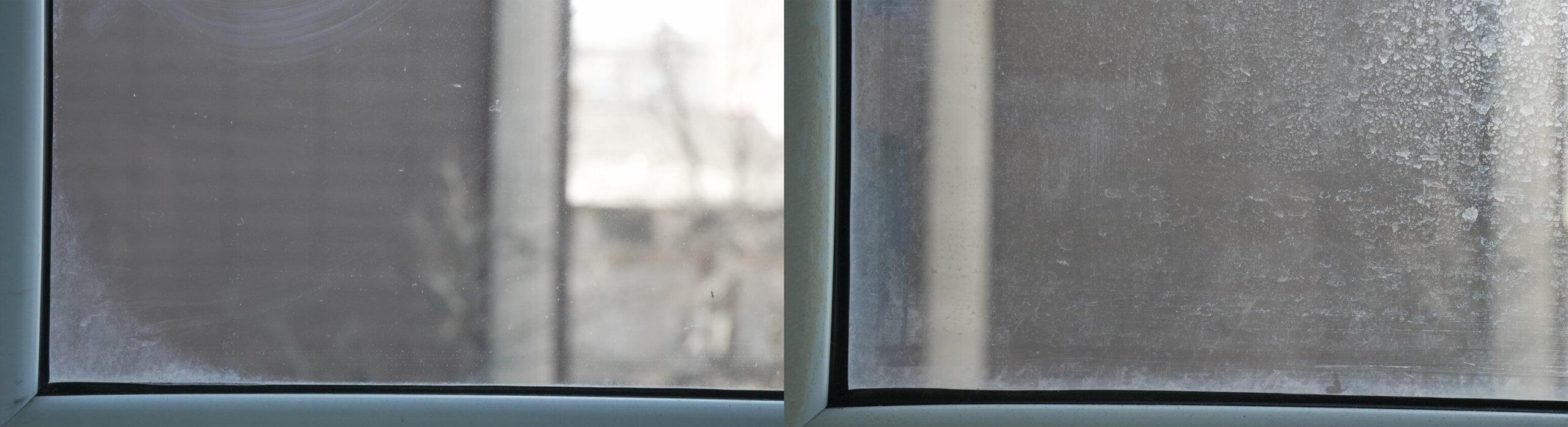 Bandymas buvo atliktas identiškomis sąlygomis. Šiuo tikslu naudojau keturių stiklų langą. Visi stiklo paketai buvo tokios pačios būklės, nes langas paskutinį kartą buvo valomas prieš šešis mėnesius rudenį.