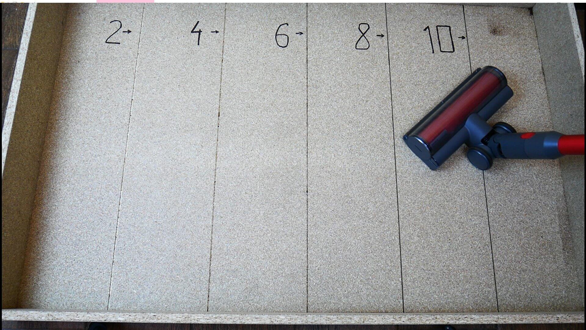 Įrodysiu savo teiginį bandymu. Yra stovas su įvairaus gylio – nuo 2 iki 10 mm – plyšiais. Į juos įpyliau maltos kavos, kad imituočiau dulkes. Štai kaip veikė „Roborock H6“ vertikalus dulkių siurblys. Jis surinko šiukšles iš kiekvieno plyšio, nesvarbu, koks gylis jis buvo. Šis dulkių siurblys tikrai gali pasigirti didele galia.