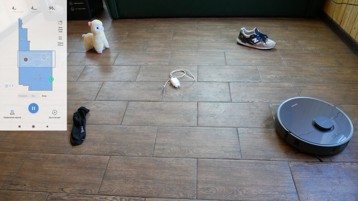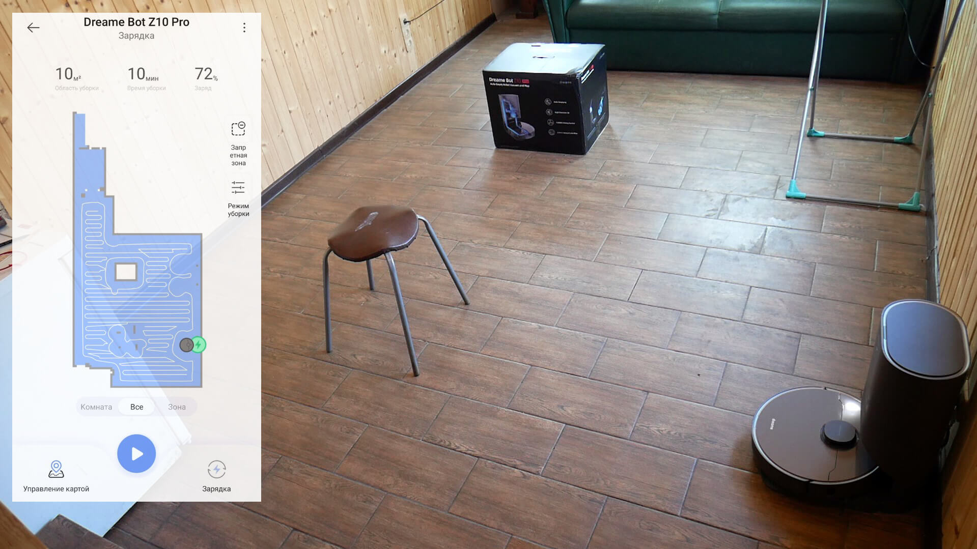 Verta atkreipti dėmesį į vieną niuansą: dėl kažkokių priežasčių „Dreame Bot Z10 Pro“, palikdamas bazę, užima šiek tiek daugiau laiko, nei jo konkurentai. Žemėlapis pats nenustatomas iš naujo ir nepersikuria; robotui tiesiog reikia šiek tiek daugiau laiko nustatyti savo buvimo vietą.