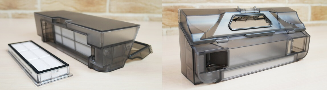 Dulkių talpykloje dabar yra užuolaidos, kurios leidžia savaime išsivalyti. Taigi, dulkių talpykla taip pat buvo atnaujinta. Beje, jos talpa sumažinta iki 400 ml, palyginti su 570 ml. Filtravimo sistemoje naudojamas tinklelio filtras ir HEPA filtras.