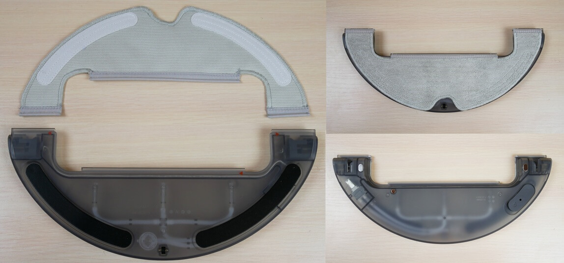Valymo šluostė talpina tik 150 ml vandens, o „D9 Max“ ir „L10 Pro“ modelių antgaliai – iki 270 ml vandens. Šiam sumažintam pajėgumui yra svari priežastis, kurią paaiškinsiu toliau. Valymo šluostė prie antgalio pritvirtinta grioveliais ir lipnia juosta. Antgalio viduje yra siurblys, elektroniniu būdu reguliuojantis vandens srautą.