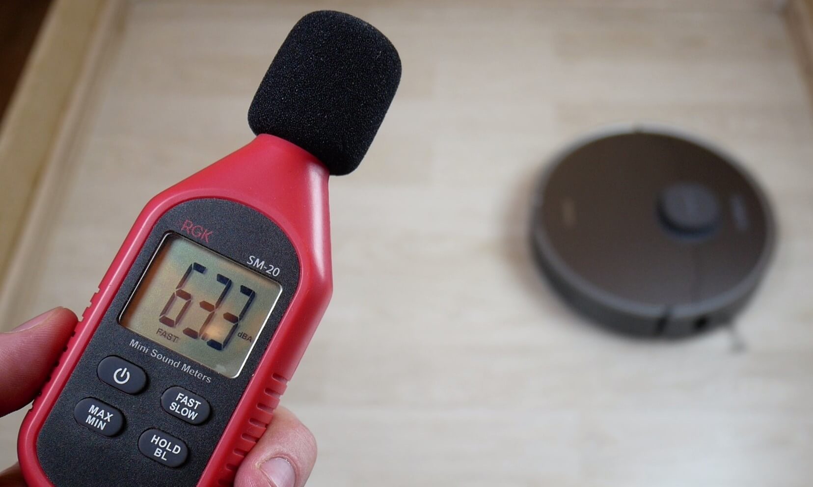 Galiausiai išmatavome roboto triukšmo lygį skirtingais režimais. Esant minimaliai siurbimo galiai, triukšmo lygis buvo apie 60–62 dB, o esant vidutinei galiai – 63,1 dB. Intensyvaus valymo režimu triukšmo lygis siekė 65,5 dB, o turbo režimu – 73,5 dB.