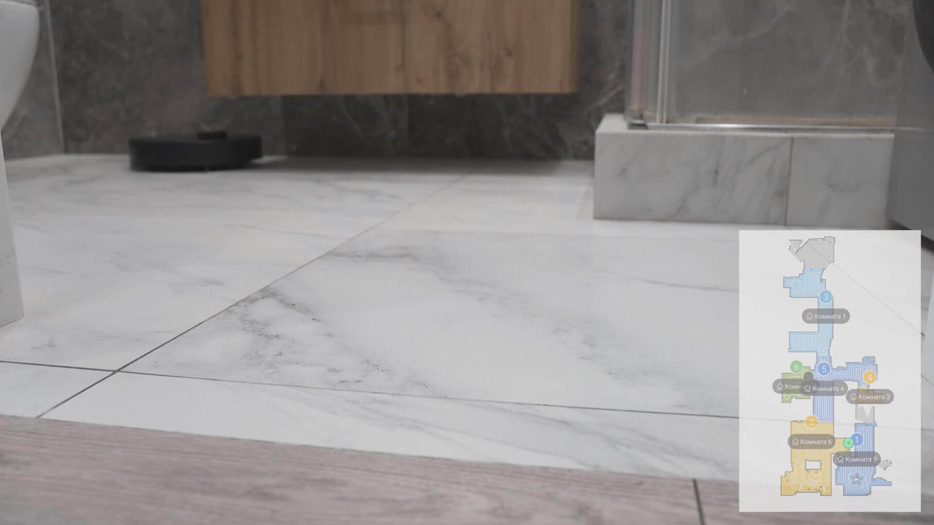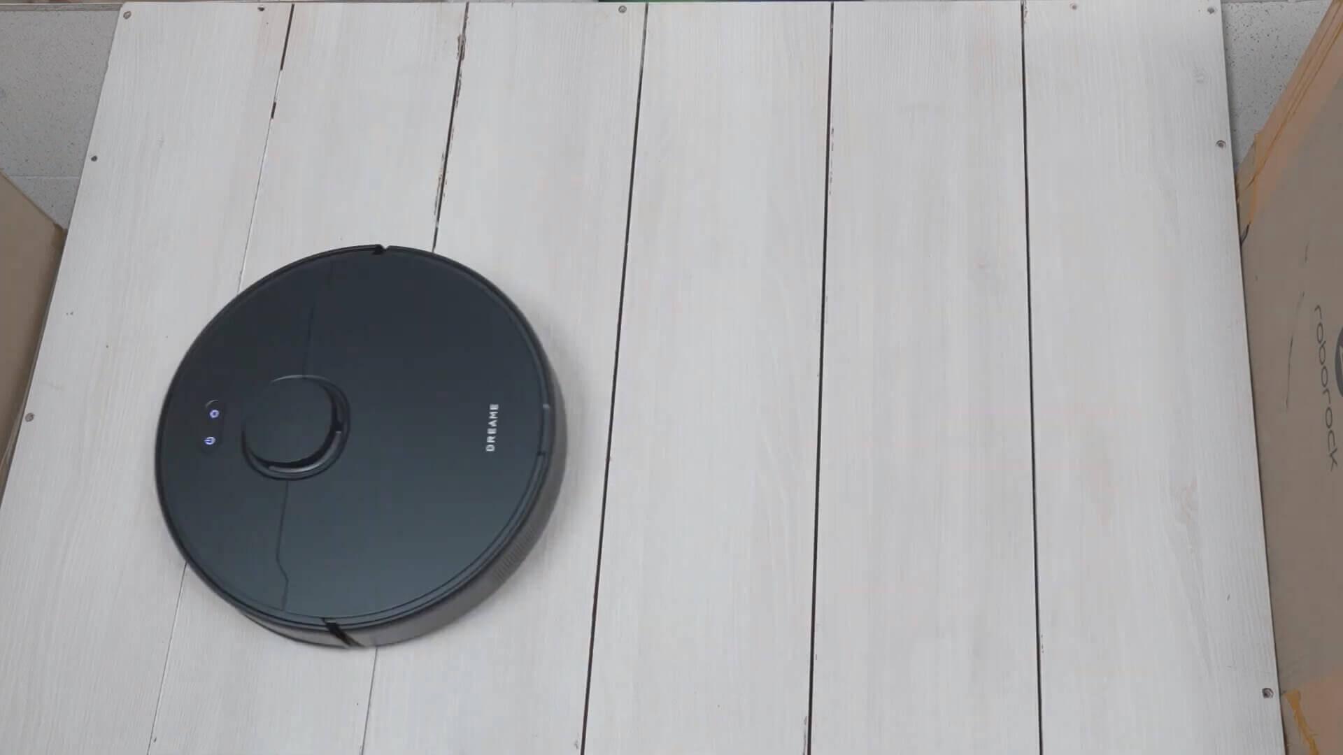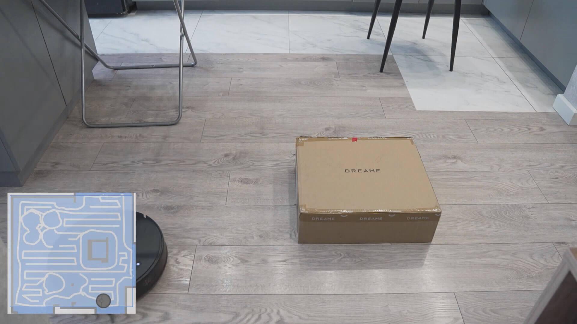 Galiausiai pereikime prie bandymų. Pirmiausia išbandysime „Dreame D9 Max Gen2“ navigaciją kambaryje su kliūtimis. Robotas dulkių siurblys pirmiausia juda aplink kambario perimetrą, tada išvalo visą prieinamą plotą gyvatės formos trajektorija. Džiovyklės kojelės nesukėlė jokių problemų. Ji taip pat atskirai išvalė dėžę ir kėdžių kojas, o tada grįžo į stotelę. Bandymas buvo sėkmingas.
