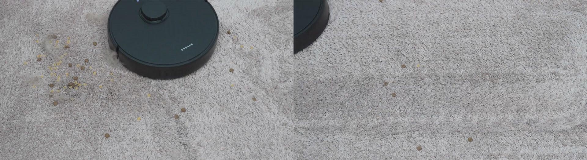 Tačiau silikoninis turbo šepetys turi ir trūkumų. Pavyzdžiui, jis ne taip gerai valo kilimus, net ir esant didelei siurbimo galiai. Nors robotas gali kruopščiai išvalyti trumpo plauko kilimus, vidutinio plauko kilimuose gali kauptis šiukšlės, kurių „Dreame D9 Max Gen2“ negali surinkti.