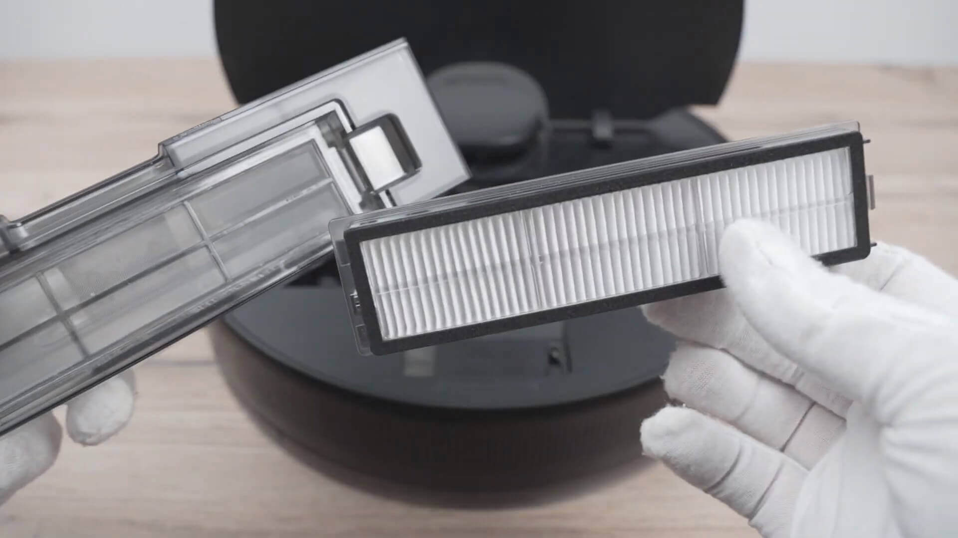 Dulkių surinkimo konteineris yra po viršutiniu dangčiu. Jame telpa iki 570 ml sausų atliekų. Filtravimo sistemoje naudojamas HEPA filtras ir tinklelis.