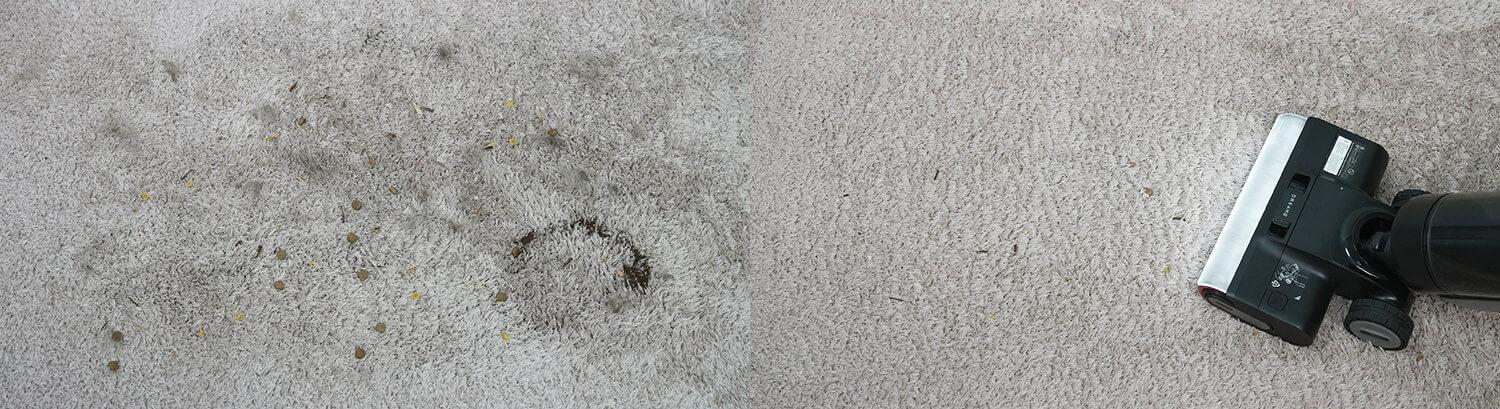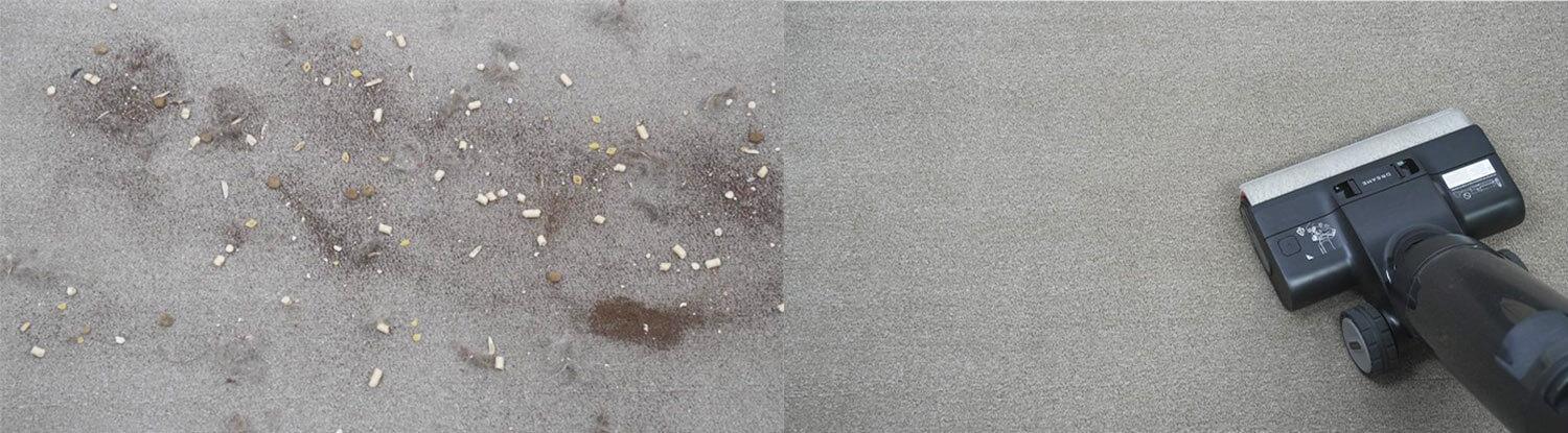 Kadangi tai yra šlapio/sauso valymo dulkių siurblys, jis nepraktiškas kilimams valyti. Tačiau tai vis tiek įmanoma, jei nepilate vandens į baką arba naudojate šlapio valymo režimą, kuris tiesiog susiurbia šiukšles nenaudojant vandens. Nepaisant purios tekstūros, volelis gali surinkti naminių gyvūnėlių plaukus ir kitas šiukšles iš trumpų kilimų.