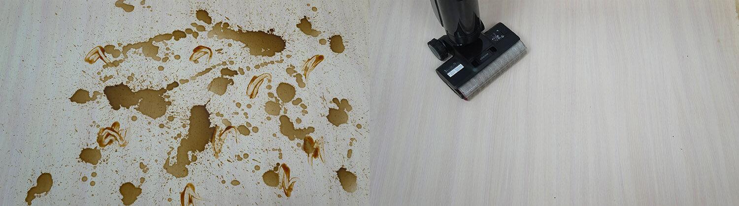 Šis šlapio/sauso valymo dulkių siurblys sugebėjo pašalinti sunkiai įveikiamas, pridžiūvusias kavos ir padažo dėmes. Kaip ir su panašiais produktais, padažo dėmėms pašalinti prireikė šiek tiek laiko. Mano atveju, visoms pagrindinėms dėmėms pašalinti prireikė apie 6 minučių. „Dreame H12 Pro“ pasiekė panašių rezultatų. M13 ir „H12 Dual“. Visais atvejais naudojau šio prekės ženklo valymo priemonę.