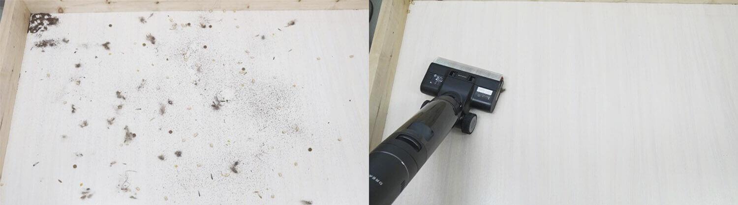 Galiausiai, pereikime prie bandymų. „Dreame H13 Pro“ puikiai tinka kasdieniam grindų valymui, tiek ant laminato, tiek ant plytelių. Jis nepalieka dryžių ir, tinkamai naudojamas, nepažeidžia jautrių grindų.
